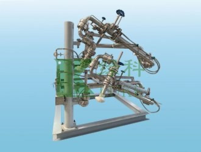 裝卸車臂,作為一種金屬萬向裝卸車管路設備,與運輸車硬管道連接,具有結構新穎、對接輕松、操作靈活、使用壽命長的特點。實現(xiàn)了裝卸車臂的全金屬硬管結構連接,解決了液化天然氣卸車增壓時使用軟管增壓導致可能爆裂的安全問題,保證了操作人員的人身安全。根據(jù)結構特點,分為具帶氮氣保護裝置和無氮氣保護裝置裝卸車臂兩種形式: